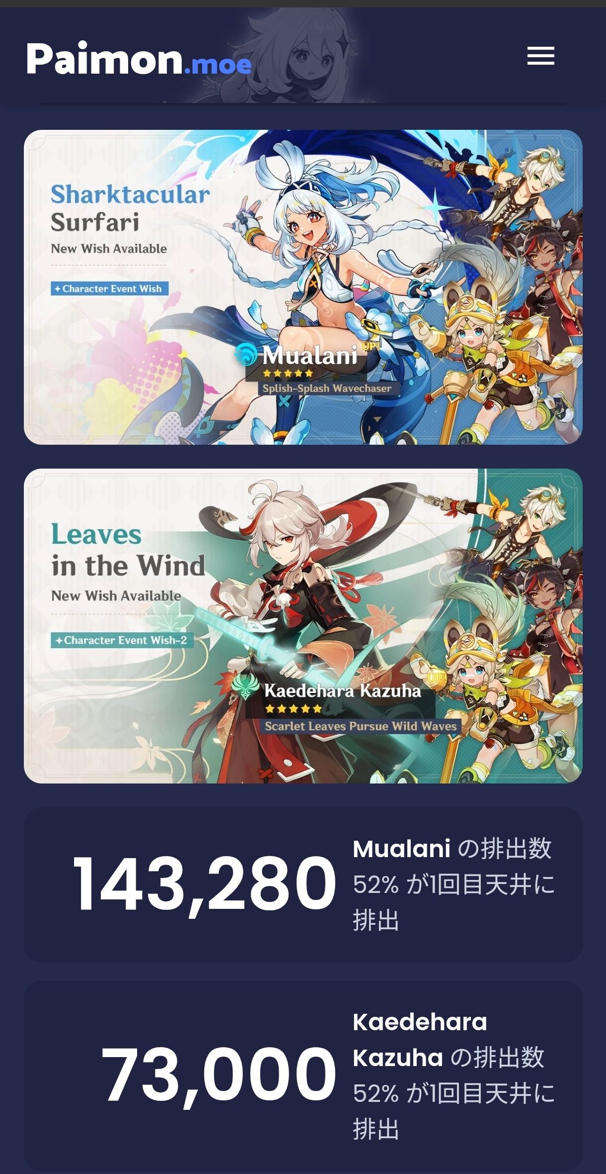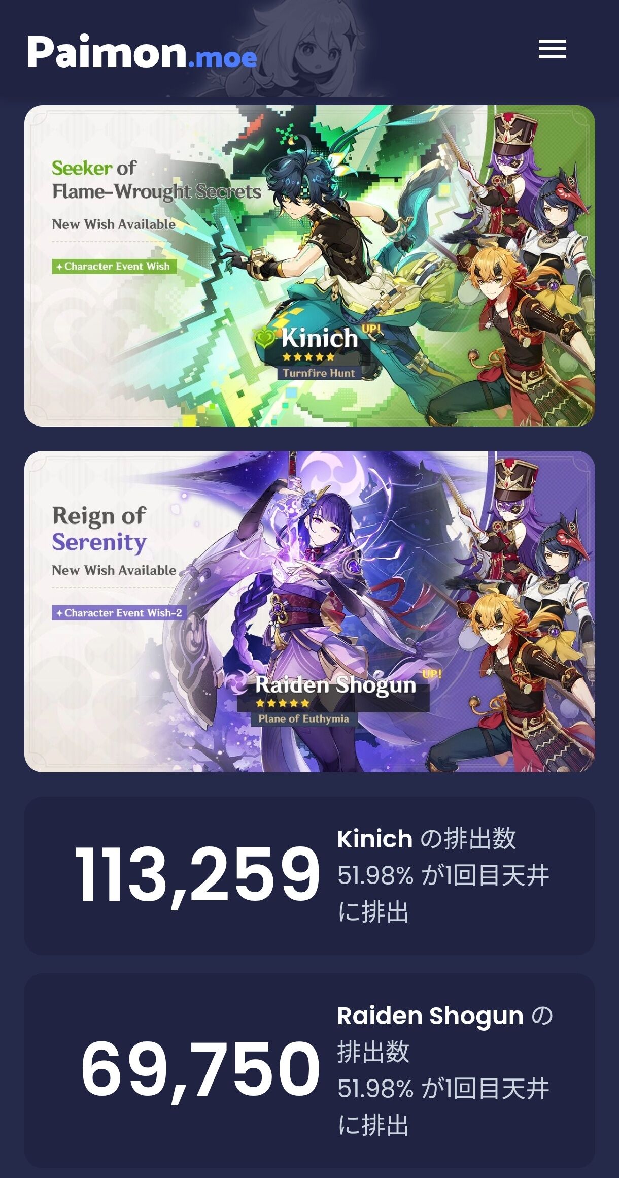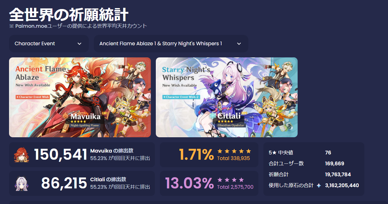 paimonmoeのキャクター☆5排出ってとこに勝率見れるよ