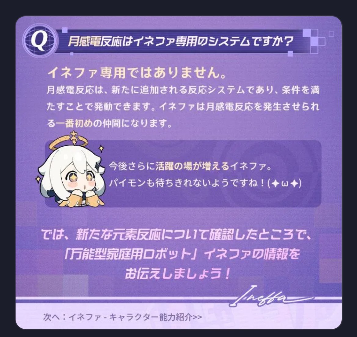 旅人さん、こんにちは!今日は新キャラクター「イネファ」の戦闘関連の情報をお届けいたします!